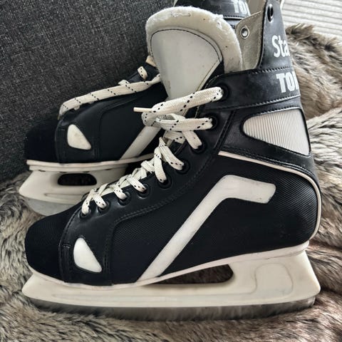 X-Match ishockeyskøyter i størrelse 42. Modellen har svart og grå overdel med snøring og polstret ankelparti for støtte. Skøytene har stålklinge og plastchassis tilpasset ishockeybruk. Egner seg til bruk på isbaner og uteis for fritids- og treningsskøyting.