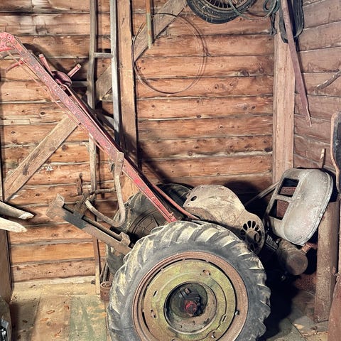 Egnet som grunnlag for restaurering eller som delemaskin til lignende tohjulstraktorer og slåmaskiner. Ikke prøvd startet, men det er olje på motor.