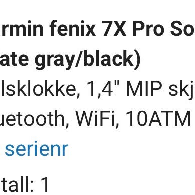 Garmin 7S smartklokke selges. Kjøpt ny hos power desember 2024.