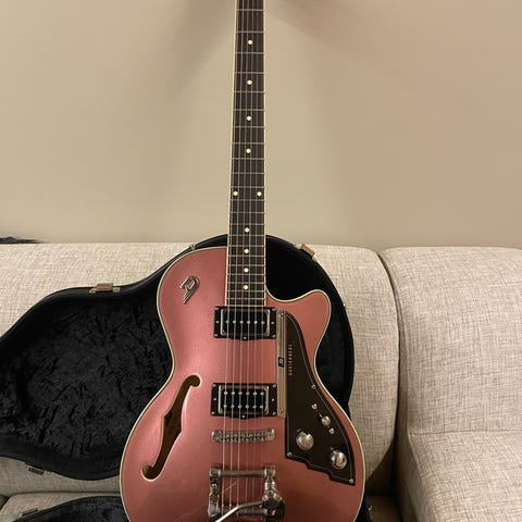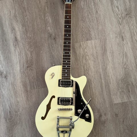 Duesenberg Fairytale Split/King Lap Steel Ivory & Black luftes for salg. Kjøpte denne ny fra Thomann slutten av januar 2026. Kjøpt for 31500 med Dunlop 926 tone bar. Kun seriøse bud besvares.