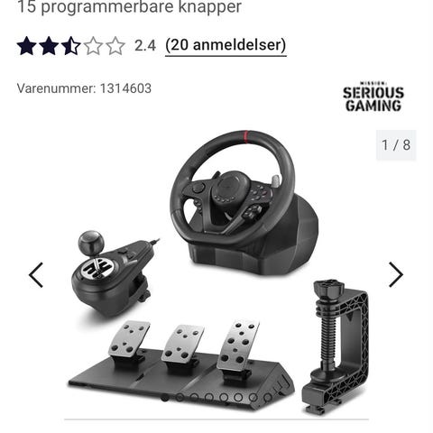 Egnet til bilspill og racingspill der man ønsker mer presis styring med ratt og pedaler i stedet for håndkontroller eller tastatur.