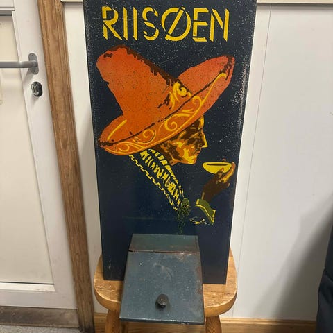 Selger et slitent, men likevel flott Tiedemanns fisker skilt , dette er den mest populære varianten av de gule, med karvet blad pakka. Skiltet er ca100x50cm.
