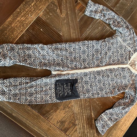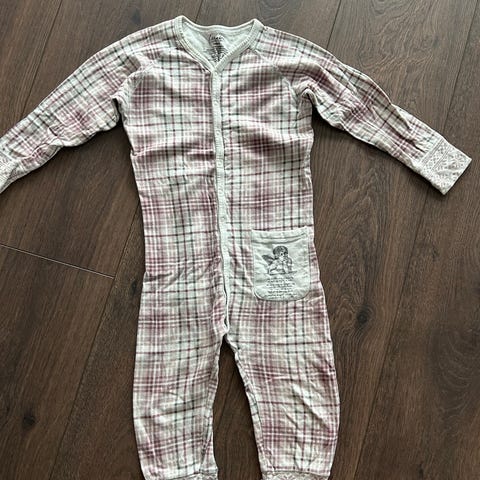 Selger en pent brukt Lilleba pysj i str 80 i fargen hvit og grønn. Alle knapper er inntakt og kan ikke se noen hull. Det eneste er at det er noen få nupper.