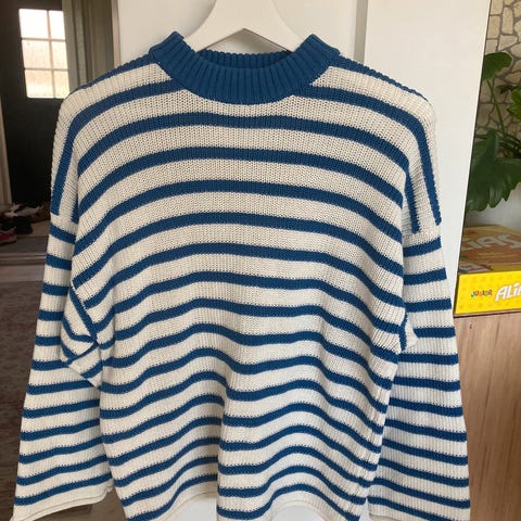 Helt ny genser fra Mango. Utrolig myk og god på. Størrelse L og normal i størrelse. Medium tykk. Lys blå i rutene.