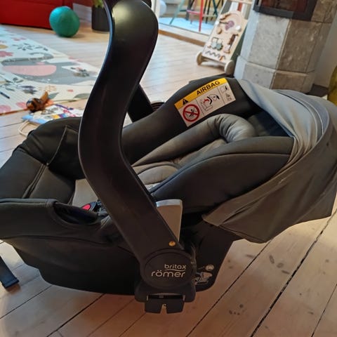 Britax Römer bilsete til baby 0–13 kg med tilhørende base.
