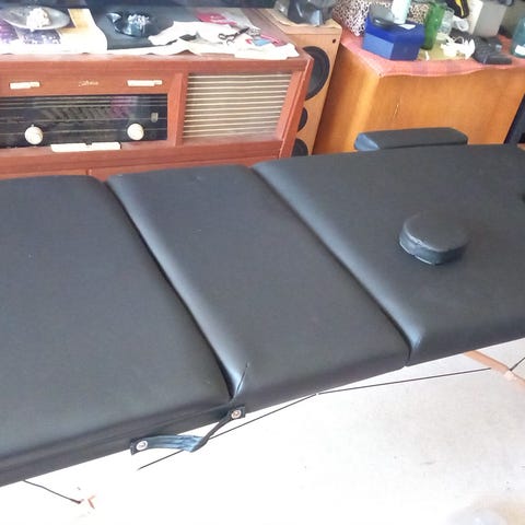 Elektrisk massasjebenk i hvit farge. Benken har polstret liggeflate med ansiktshull og justerbar ryggdel. Stabilt understell med elektrisk høydejustering, egnet for massasje, behandling og velværebehandlinger i klinikk eller hjemme. Størrelse 80x200 cm