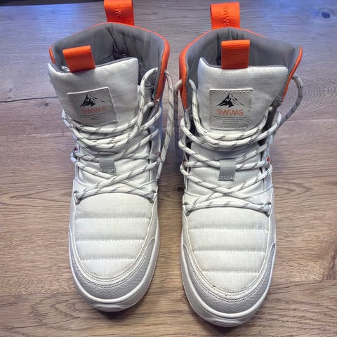 SWIMS vinterstøvler unisex i størrelse 41. Støvlene har grå overdel med snøring og polstret skaft for ekstra komfort. Undersålen er i gummi med markert mønster for bedre grep på glatt underlag. Modellen er merket som unisex og passer derfor både dame og herre, avhengig av fotbredde og passform. Egnet til bruk i kaldere vær og på vinterføre i hverdagen.Swims vintersko i str. 41, brukt 5-6 ganger. Så de fremstår som helt nye. Selges for 1750,-.