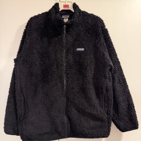 Genseren er gul og har stor Patagonia-logo på brystet. Modellen har fast hette med snøring og kengurulomme foran. Materialet består hovedsakelig av polyester med innslag av resirkulert bomull, ifølge vaskelappen. Passer til hverdagsbruk og fritidsaktiviteter.