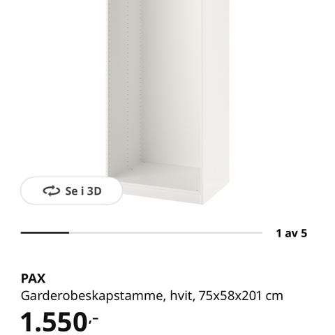 Pent brukt PAX skap selges da det ikke brukes.