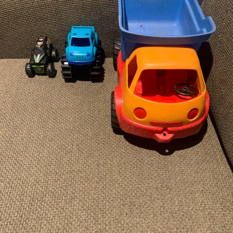 Plasto lekebiler lastebiler i plast i flere farger. Pakken inneholder blant annet tippelastebiler med bevegelig lasteplan. Lekekjøretøyene er laget i robust plast og er egnet for barn som liker lek med kjøretøy, både inne og ute der underlaget er egnet. Fargene inkluderer blant annet oransje, grønn, gul, grå og svarte hjul med hvit dekor.