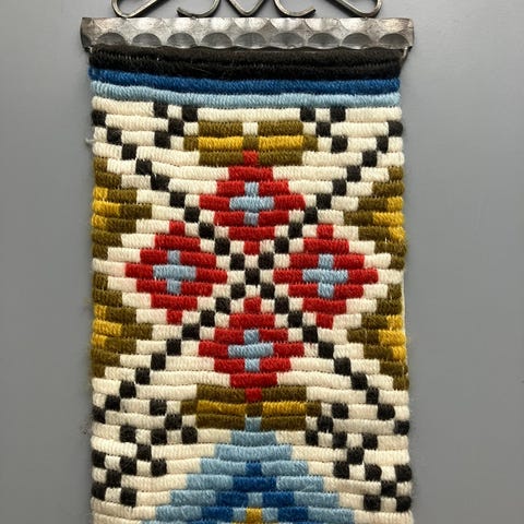 Vintage Håndlaget Brodert Veggteppe Ull 49x78 cm Klostersting