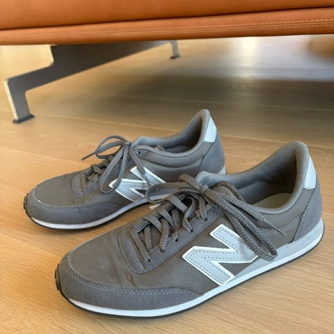 New Balance 410 i str 37,5. Overdel i tekstil og semsket materiale, med snøring foran for justerbar passform. Yttersålen har mønster for bedre grep. Modellen passer til hverdagsbruk og lett aktivitet. Ikke brukt da de er for små.