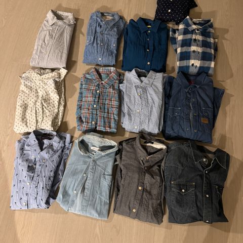 Disse skjortene passer nok folk fra 12-15 år eller fra 145-165. Kan ta 40kr stk ellr samlet for 159.