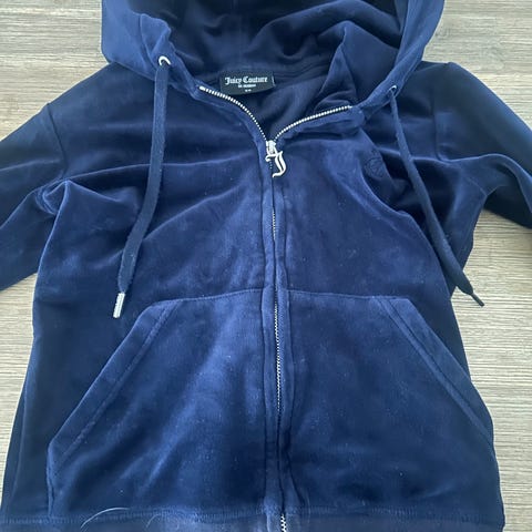 Juicy Couture hettegenser for dame i størrelse S. Genseren er blå og laget i polyester.