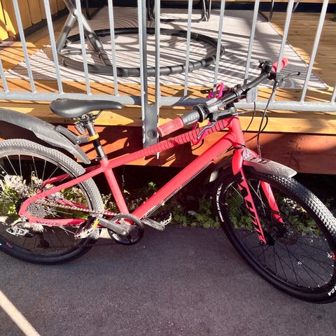 Brukt av gutt så litt slitasje på bakdekket. 24" hjul