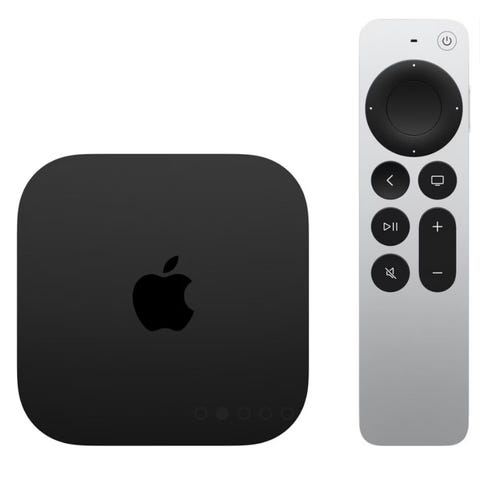 Apple TV 4K med 128 GB lagringskapasitet i fargen svart. Enheten støtter HDMI 2.1 med opptil 4K60 HDR10, HDR10+ og Dolby Vision-videoutgang. Har gigabit Ethernet-tilkobling og leveres med sølvfarget fjernkontroll med berøringsflate og innebygde medieknapper. Egnet for strømming av video, musikk og bruk av apper på TV med kompatibel HDMI-inngang.