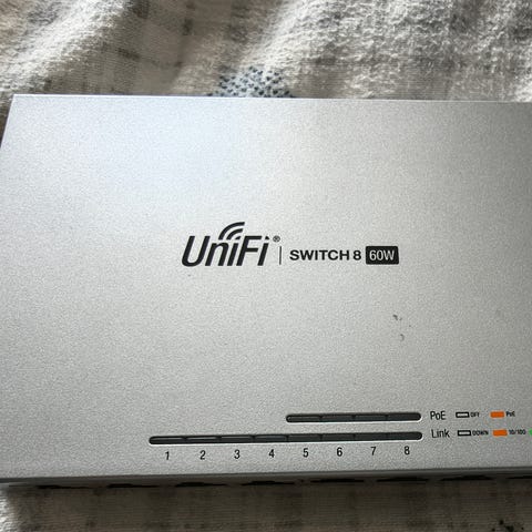 Ubiquiti UniFi Lite 8 PoE switch m/strømforsyning og veggfeste