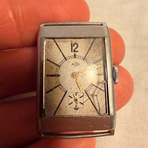 Klokken kommer fra dødsboet til en urmaker. Den tikker når jeg trekker den opp, men den har mangler som sekundviseren og pins for å feste reim. Uansett så virker den solid bygget. Kom med info om du har eller forslag til pris.