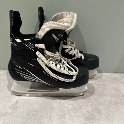 Ishockeyskøyter for barn i gul og svart farge. Modellen har klassisk snøring med lisser og ekstra stropp over vristen for bedre støtte. Overdelen er laget i syntetisk materiale med polstret ankelparti for økt komfort. Skøytene har faste stålskinner tilpasset ishockeybruk. Egnet for barn som skal bruke skøytene til lek og enkel ishockey på isbaner eller frosne flater.