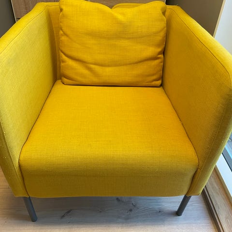 Må hentes før tirsdag. 2 blå sofaer, en puff og en stol. Har hatt katt så noe nuppete. Kan muligens fjernes, men ikke noe vi har gjort.
