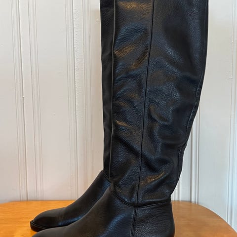 Ralph Lauren hæler støvletter i skinn i størrelse 39 i brun farge. Støvlettene har middels høy hæl og går til under kneet. De har glidelås på innsiden av skaftet og justerbar rem med spenne på utsiden. Sålen har RL-logo. Egnet til bruk i hverdagen eller til mer formelle anledninger der man ønsker en klassisk skinnstøvlett med hæl.