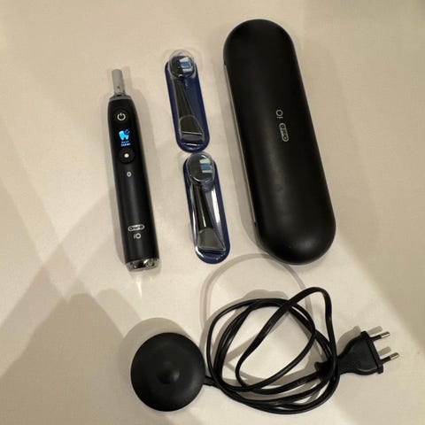 Oral-B iO 9s elektrisk tannbørste med reiseetui og lader. Kjøpt i oktober 2023. Børstehoder må kjøpes separat.