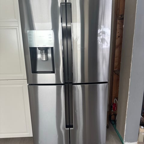 Samsung kombiskap kjøleskap og fryser i rustfritt stål.
