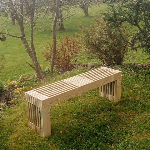 Benk "Rising Sun" bygges på bestilling i trykkimpregnert med rustfrie/syrefaste skruer. Se gjerne vår facebookside "Hagemøbler i tre fauske" for flere bilder https://www.facebook.com/profile.php?id=100083272872266