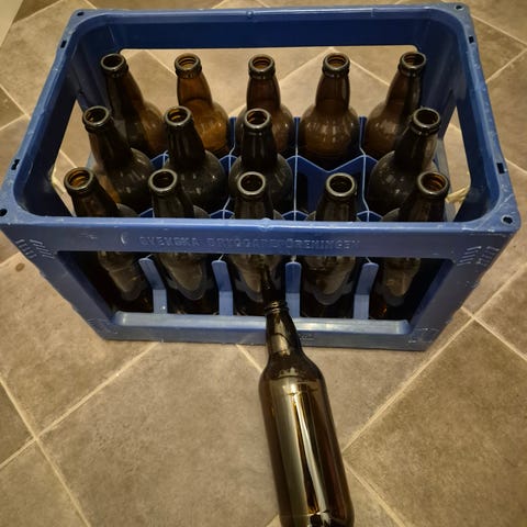 EZ Cap flasker 500 ml brun glass med patentkork. Kjøpt til å bruke med ølbrygging, brukt kanskje en gang for noen år siden. De er cirka 10-15 år gamle.
