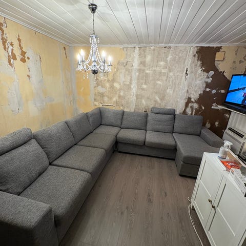 God sofa selges billig,det ene pute trekket har glidelåsen ryke på under vask så burde syes