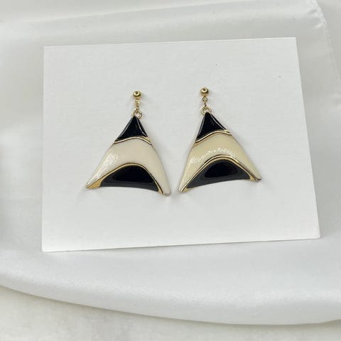 Flotte retro øredobber med rund form i svart og krem/beige emalje, kombinert med gullfarget bakside.