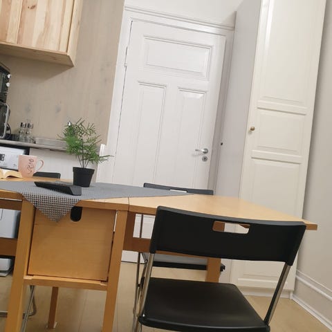Pent brukt IKEA Norden spisebord i heltre. Kan slås opp og legges sammen i to retninger og har flere romslige oppbevaringsskuffer. Et særdeles plassbesparende og praktisk møbel, med andre ord! Kan hentes på Stovner, eventuelt leveres i Oslo for et lite påslag i pris.