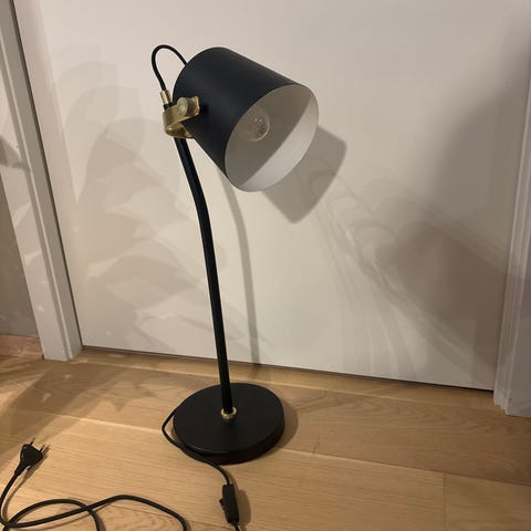 Blitt brukt som nattbordslampe. Mangler skruen på toppen av den ene lampen, men har ingenting å si for bruken.
