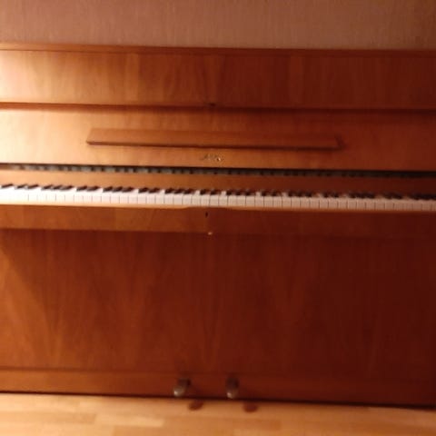 Bechner piano selges da vi skal overta et annet familiepiano. Det er veldig fin klang i instrumentet.
