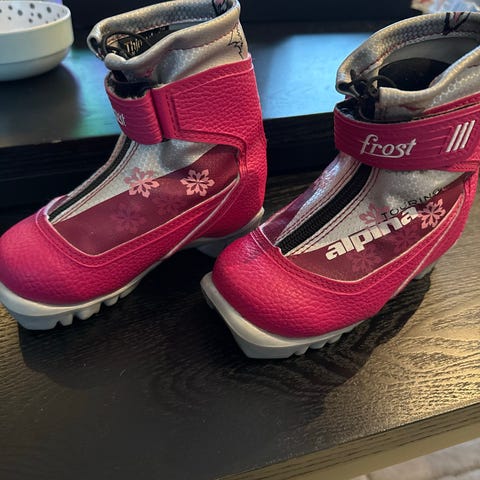 Alfa Frost skisko for barn i størrelse 28. Modellen har overdel i syntetisk materiale med blå og lyseblå detaljer. Fôret innside gir ekstra varme. Sålen er profilert for godt feste på snø og is. Egnet til bruk med langrennsski for barn.