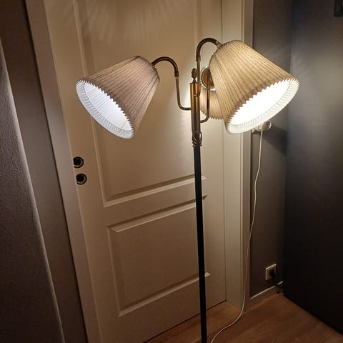 Vintage Tivoli-lampe i messing med to armer selges. Lampen er original fra 70-tallet, og virker som den skal. Pent brukt uten skrammer/merker, men har nok godt av litt pussing og stell. Selges uten skjermer.