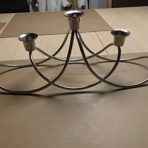 Georg Jensen Swing 6-armet lysestake i stål. Lysestaken har sju separate armer plassert på en rund base, med kopper formet for kronelys. Utførelsen er i børstet stål/metall med et moderne og skulpturelt uttrykk. Egner seg til bruk på spisebord, skjenk eller andre flater der man ønsker samlet lys fra flere stearinlys.