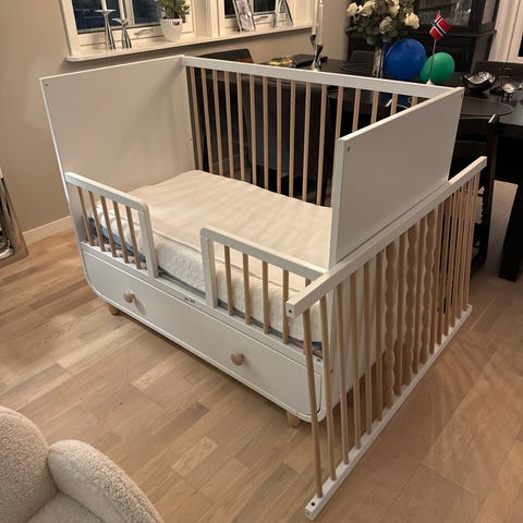 Madrass i str 90x40 medfølger om ønskelig. Madrass brukt med laken hele tiden, samt barnet har hovedsakelig sovet i babynest i vuggen.