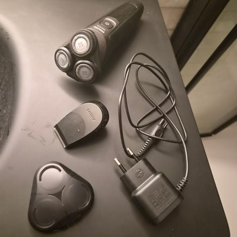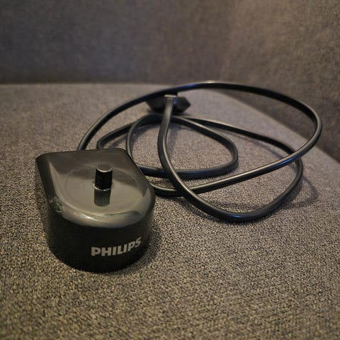Philips HQ8505 strømadapter. Denne modellen er kompatibel med de fleste Philips Norelco elektriske barbermaskiner, barberhøveler og trimmere i flere serier, inkludert 3000-, 5000-, 7000- og 9000-serien.