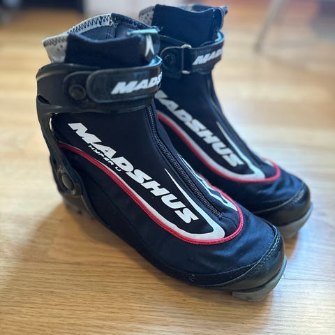 Madshus Hyper S skistøvler for langrenn med SNS-såle. Støvlene er i hovedsak svarte med røde og hvite detaljer. De har snøring med glidelås over, samt borrelåsreim øverst for ekstra støtte rundt ankelen. Passer til SNS-bindinger og er egnet til klassisk langrennstrening og turbruk.