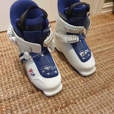 Nordica alpinstøvler for barn. Tilsvarer vanlig størrelse 28 - 29. Støvlene har justerbar sålelengde 180–195 mm (235 mm yttermål). Brukt noen få ganger.