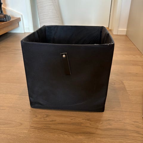 Morsø vedkorg i god stand. Dimensjoner ca 43x38x33cm. Selve boksen er i metall med nett som kan tas ut for henting av ved