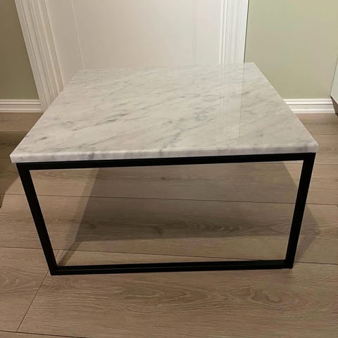 Helt og fint bord fra Bolia, svart stål og hvit carrera marmor i platen. Noe bruksslitasje i steinplaten men ingen skader/hakk.