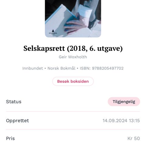 Avtalerett (2017), 10. utgave. Geir Woxholth. Pent markert.