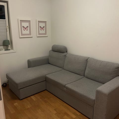 Pent brukt sovesofa til salgs. Oppbevaring under sjeselongdel. Som seng blir målene 200x190. Må hentes. Ukjent merke og alder.