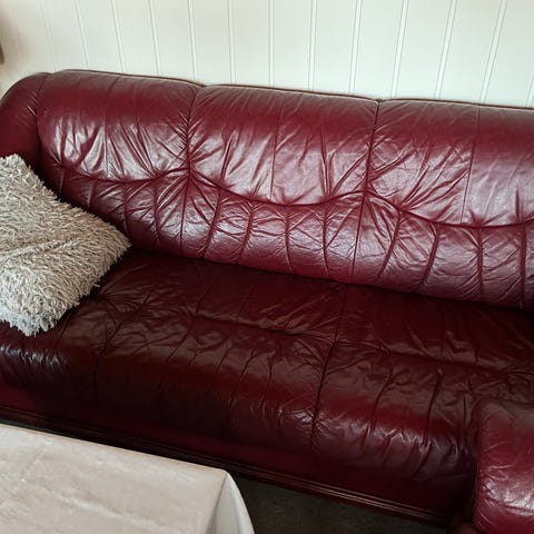 Rød 3-seters sofa i skinn.