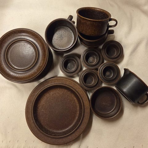 - 6 asjetter diam. 20 cm. 5 mørke, 1 lysere brun. Kr. 70 pr. stk.