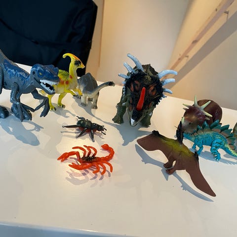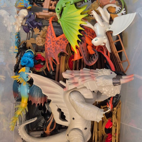 6 dragefigurer (en knukket, resten uskadd)