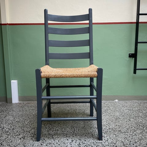 Nydelig grønnmalt jærstol til barn