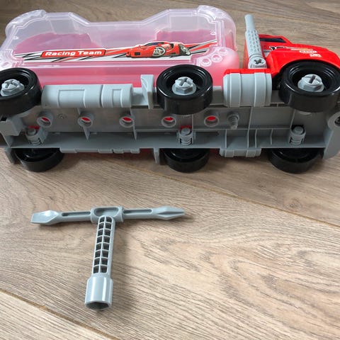Delen er utformet som en motor med turboladere og har rød og grå farge. Kan brukes som del av en Hot Wheels-bane eller lekesett der biler kan festes og kjøres gjennom. Passer til små lekebiler i Hot Wheels-størrelse. Plastkonstruksjon med støpte detaljer og trykket Hot Wheels-logo på toppen. Fungerer bra.